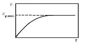 1. К образцу полимера приложено постоянное напряжение σ0. Если при этом течение отсутствует, то напряжению σ0 соответствует определенная равновесная высокоэластическая деформация εРАВН. Однако равновесная высокоэластическая деформация, соответствующая напряжению σ0, достигается не мгновенно. Как видно из рис.18, равновесная деформация является верхним пределом, к которому во времени стремится реальная деформация.