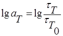 Таким образом, зависимость параметра приведения аТ от температуры отражает температурную зависимость времени релаксации полимера. В методе приведения па самом деле очень важным оказывается правильный выбор температуры приведения или температуры отсчета Т0. Если в качестве Т0 выбрать, например, комнатную температуру, то характер зависимости параметра приведения от температуры для различных полимеров будет неодинаков. Он зависит от их химической природы. В то же время установлено, что все полимеры при температурах, равноудаленных от температуры стеклования, при одинаковом молекулярно-массовом распределении имеют одинаковые времена релаксации. Поэтому если для каждого полимера в качестве стандартной температуры выбрать температуру стеклования ТС и построить аТ как функции разности между температурой опыта и ТС, то окажется, что в большинстве случаев эти функции имеют одинаковый вид: