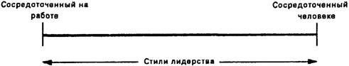 Рэнсис Лайкерт и его коллеги в Мичиганском университете сравнивали группы с высокой производительностью труда и группы с низкой производительностью в различных организациях. Руководители групп с высокой и низкой производительностью классифицировались по континууму, находящемуся в пределах от одной крайности — сосредоточенные на работе, до другой — сосредоточенные на человеке (рис. 25.2).
