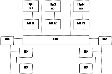 На рис. 1.22. представлен вариант структуры многопроцессорной ВС с индивидуальной памятью.