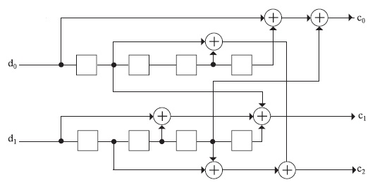 Рис. 3.8. Сверточное кодирование с двумя битами кодовой последовательности