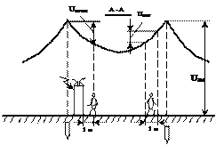 Так как заземлитель обычно состоит из нескольких параллельно соединенных электродов, расположенных на сравнительно небольших расстояниях друг от друга, то возникает явление экранирования (рис. 12 - 5), приводящее к уменьшению объема грунта, в котором происходит растекание тока с каждого электрода, и, как следствие этого, увеличение сопротивления заземлителя. Таким образом, если заземлитель из одного электрода имеет сопротивление rэд, то заземлитель из n параллельно включенных электродов имеет сопротивление не rэд/n, а