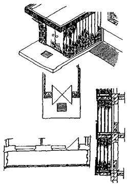 Заполнение оконного проема состоит из оконных переплетов, оконных коробок и оконной доски (рис. 112.).