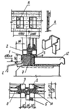 | 1 – нащельник; 2 – глухой переплет; 3 – сухарь; 4 – мастика; 5 – резиновые профили; 6 – нащельник притвора; 7 – утеплитель; 8 – слив; 9 – переплет фрамуги; 10 – резиновые профили; 11 – стеклопакет; 12 – подоконная плита |