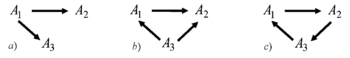 ); b) слабо эргодическая, но не эргодическая цепь (граф переходов не является ориентированно связным) c) эргодическая цепь (граф переходов ориентированно связен).