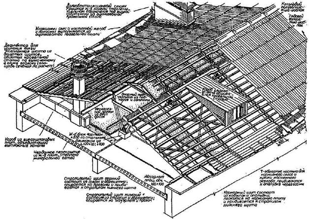 Бесчердачные крыши с рубероидной кровлей и внутренним водостоком