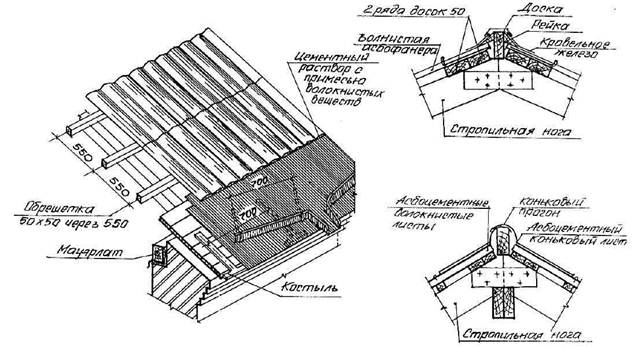 Кровли из волнистых асбестоцементных листов - они долговечны, несгораемые, имеют малый вес и небольшое количество швов, не требуют сплошной опалубки, дешевы в эксплуатации.