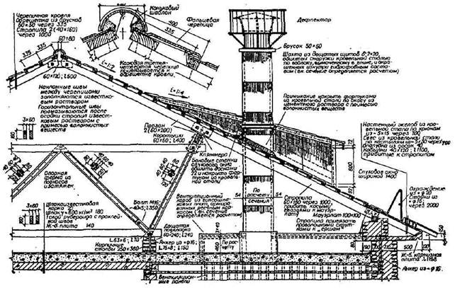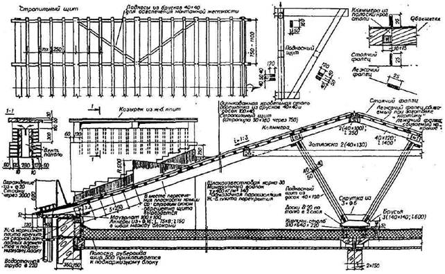 | СЛУХОВОЕ ОКНО С КОРОБОМ, ОБШИТОЕ ОЦИНКОВАННОЙ КРОВЕЛЬНОЙ СТАЛЬЮ | СТРОПИЛЬНЫЙ ЩИТ НИЖНИЙ СОСТОИТ ИЗ СТРОПИЛ И ОБРЕШЕТКИ; ОПИРАЕТСЯ НА МАУЭРЛАТ И ПРОГОН | СЛУХОВОЕ ОКНО С КРЫШЕЙ ИЗ ВОЛНИСТЫХ АСБЕСТОЦЕМЕНТНЫХ ЛИСТОВ | ||