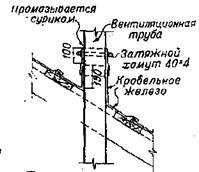 вентиляционные стояки пропускаются сквозь холодный чердак на крышу, над которой наращиваются на высоту около 1 м для улучшения условий тяги.