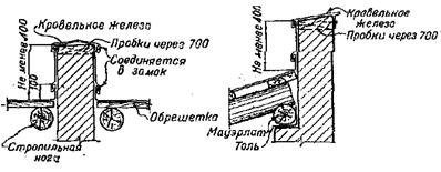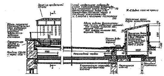 В чердачных крышах кровля приподнимается над чердачным перекрытием; у карнизов эта величина не менее 0,45м.