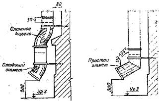 | СЛОЖНОЕ КОЛЕНО | СЛОЖНОЕ КОЛЕНО | СЛОЖНЫЙ ОТМЕТ | ОБХОД КАРНИЗА (ДЕЛАЕТСЯ ПРИ КАРНИЗАХ С ОТНОСОМ БОЛЕЕ 250; КАРНИЗЫ С МЕНЬШИМ ОТНОСОМ ПРЕРЫВАЮТСЯ ДЛЯ ПРОПУСКА ТРУБ) | ||
