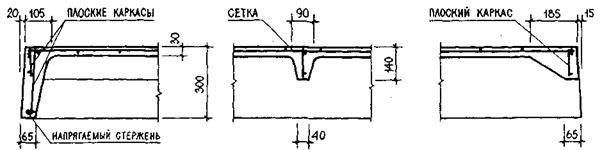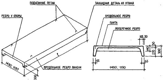 | а – ребристая панель крыши | б – поперечное сечение ребристой панели | ||