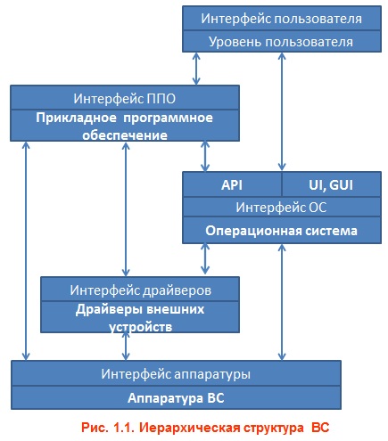 ВС в целом может рассматриваться как иерархически организованная совокупность элементов аппаратуры и программного обеспечения (рис. 1.1)