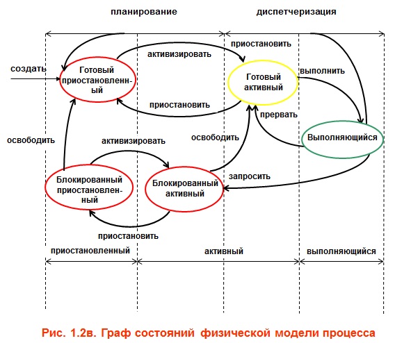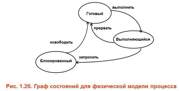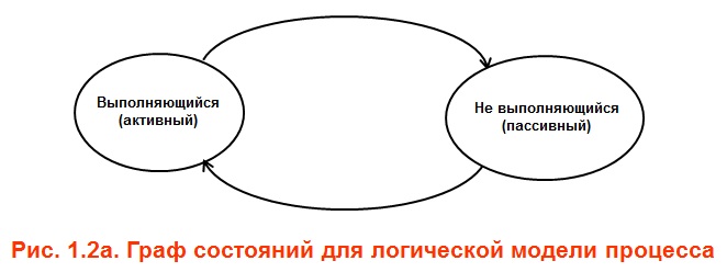 Состояние процесса в логической модели может принимать два значения: выполняющийся (активный) и не выполняющийся (пассивный) ( сохранение и переключение контекста в данной модели не рассматривается).