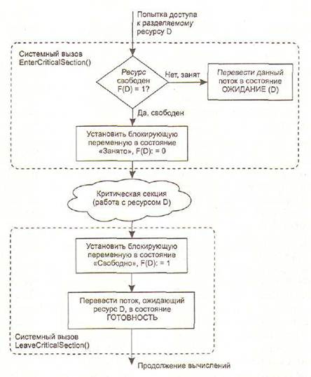 На рис. 5.1 показано, как с помощью этих функций реализовано взаимное исключение в операционных системах семейства Windows NT.