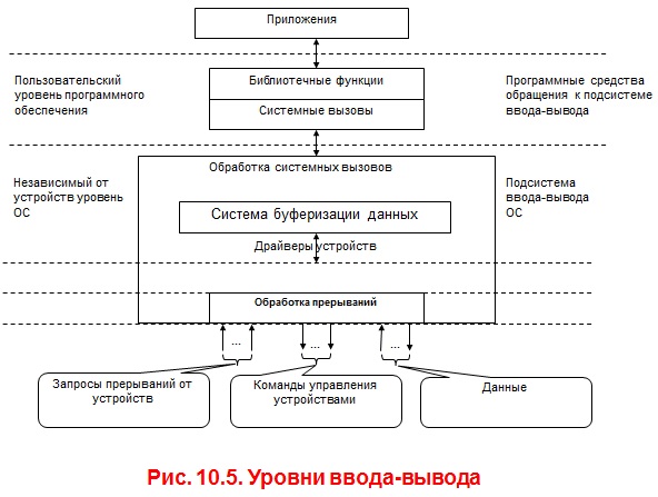 Программное обеспечение ввода-вывода разделяется на четыре уровня (рис.5):