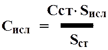 Затем рассчитывают площадь пиков исследуемого вещества и стандартного образца по формуле: