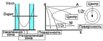 Рис. 45. Схемы, показывающие различную скорость охлаждения по сечению и в связи с этим несквозную прокаливаемость.