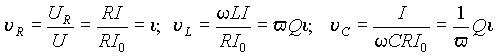 При уменьшении частоты значение фазового сдвига стремится к значению - 90°, а при увеличении к +90°, проходя через нулевое значение при частоте резонанса. Скорость изменения функции j (v) определяется добротностью контура. Последовательный резонансный контур может питаться также от источника электрической энергии, обладающего свойствами источника тока, т.е. обеспечивающего постоянный ток в нагрузке. Выражения (5) остаются справедливыми и в этом случае, но ток в них будет константой. Поэтому постоянным будет падение напряжения на резисторе UR = RI = const. Разделив все напряжения на это базовое значение, получим представление их в относительных единицах в виде