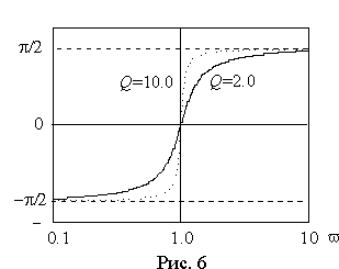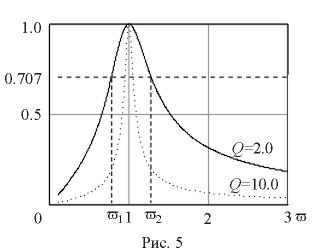 Как и следовало ожидать, значение j определяется добротностью контура. Графически эта зависимость для двух значений добротности показана на рис. 6.