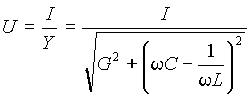 где Падение напряжения на входе контура U при питании его от источника, обладающего свойствами источника тока и формирующего ток с действующим значением I, будет равно