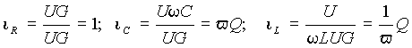 Функции u L (v) и u С (v) монотонны, а u(v) имеет минимум u =1.0 при резонансной частоте, когда u L (v) - u С (v) = 0. В случае стремления относительной частоты к бесконечности и к нулю, напряжения на одном из реактивных элементов стремится к бесконечности. При резонансной частоте они одинаковы и их отношение ко входному напряжению равно добротности.