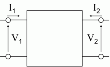 Однако математическая теория четырёхполюсников не предполагает никаких преопределённых потоков энергии/информации в цепях, поэтому названия «входные» и «выходные» являются данью традиции и с этой оговоркой будут использоваться далее.