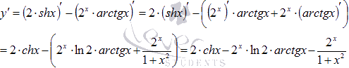 В первом выражении выносим двойку за знак производной, а ко второму выражению применяем правило дифференцирования произведения: