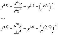 Для нахождения производных высшего порядка можно использовать следующие формулы: