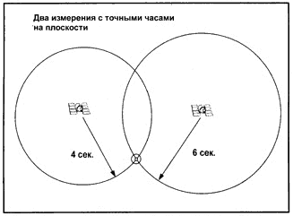 Если часы на спутнике и в приёмнике имеют одинаковую точность хода, то точное местоположение может быть найдено по измерениям расстояния до двух спутников.