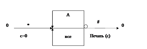 Где дуга без стрелки соответствует отождествлено соединяемых его вершин. «Все» - это интерм или символ внутреннего алфавита RBM, означающих (и в данном случае), что на дуге «все» может быть любой символ из тех, которые используются для записи исходного текста. Приведенный граф является программой R-машины или R-программы. Эта программа задает пока только логическую структуру исходного текста (ЛСД). В данном случае она задает ЛСД как произвольную последовательность любых символов, выделяя в ней два символа А и #.