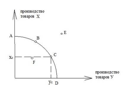 Производство продукции, соответствующее любой точке на кривой ПВ, является эффективно функционирующим.
