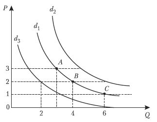 Если, например, потребители захотят купить большее количество данного товара по каждой цене, то кривая спроса переместится вправо от d 1 к d 2. Желание приобрести меньше товара, уменьшить спрос и сдвинет кривую спроса влево: от d 1 к d 3.
