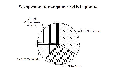 Средние темпы роста для мирового ИКТ- рынка в настоящее время стабильны, но не велики и постепенно снижаются: если в 2005 году рынок вырос на 4,6 %, то в 2006 году темпы роста снизились до 4%.