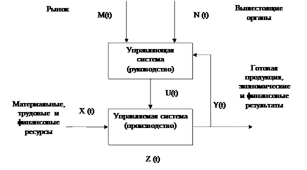 В соответствии с общей теорией управления, процесс управления можно представить как взаимодействие двух систем - управляющей и управляемой.