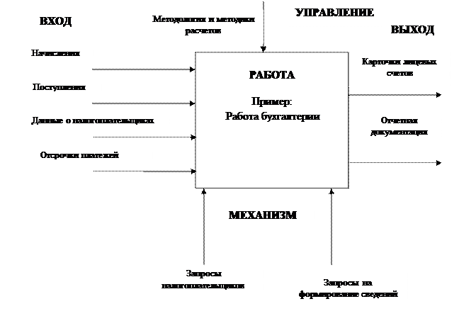 Метод SADT (Structured Analysis and Design Technique) и его более современная разновидность IDEF0 Integrated DEFinition) считается классическим методом процессного подхода к управлению. Основной принцип процессного подхода заключается в структурировании деятельности организации в соответствии с ее бизнес-процессами, а не организационно-штатной структурой. Именно бизнес-процессы, формирующие значимый для потребителя результат, представляют ценность, и именно их улучшением предстоит в дальнейшем заниматься. Модель, основанная на организационно-штатной структуре, может продемонстрировать лишь хаос, царящий в организации (о котором в принципе руководству и так известно, иначе оно бы не инициировало соответствующие работы), на ее основе можно только внести предложения об изменении этой структуры. С другой стороны, модель, основанная на бизнес-процессах, содержит в себе и организационно-штатную структуру предприятия.