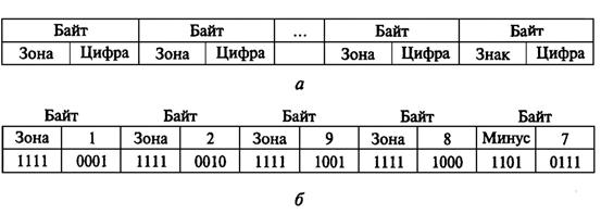 Рис. 2.8. Зонный формат двоично-десятичных чисел: