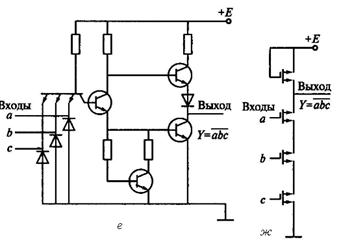 е – принципиальная электрическая схема элемента И-НЕ на ТТЛ;
