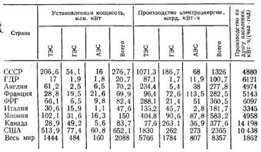 Сравнительные данные о структуре установленной мощности электростанций и выработке электроэнергии в 1981 г. по ряду ведущих стран мира даны в табл. 1.3