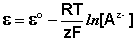 Е = Е0 +RT/nF ln(окисл. форма/восст. ф.) = Е0 +0,059/nln(о.ф./в.ф.)