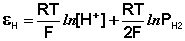Потенциал водородного электрода зависит от активности ионов Н+ в растворе и давления водорода; потенциал стандартного водородного электрода (с активностью ионов Н+ 1 моль/л и давлением водорода 101.3 кПа) принят равным нулю. Поэтому для электродного потенциала нестандартного водородного электрода можно записать: