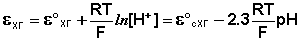 Хингидронный электрод является т.н. окислительно-восстановительным электродом (см. разд. 3.5.5); зависимость его потенциала от активности ионов водорода имеет следующий вид: