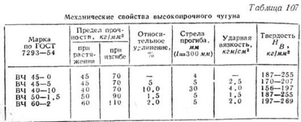 Химический состав и свойства высокопрочных чугунов регламентируются ГОСТ 7293-85 и маркируются буквами «В» — высокопрочный, «Ч» — чугун и числом, обозначающим среднее значение предела прочности чугуна при растяжении.