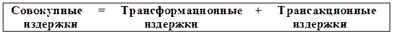 В целом совокупные издержки общества равны сумме трансформационных издержек, т.е. издержек, связанных с превращением затрат в готовую продукцию, и трансакционных издержек.