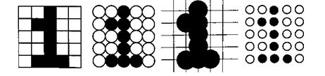 Форма пикселов растра определяется особенностями устройства графического вывода (рис. 1.2). Например, пикселы могут иметь форму прямоугольника или квадрата, которые по размерам равны шагу растра (дисплей на жидких кристаллах); пикселы круглой формы, которые по размерам могут и не равняться шагу растра (принтеры).