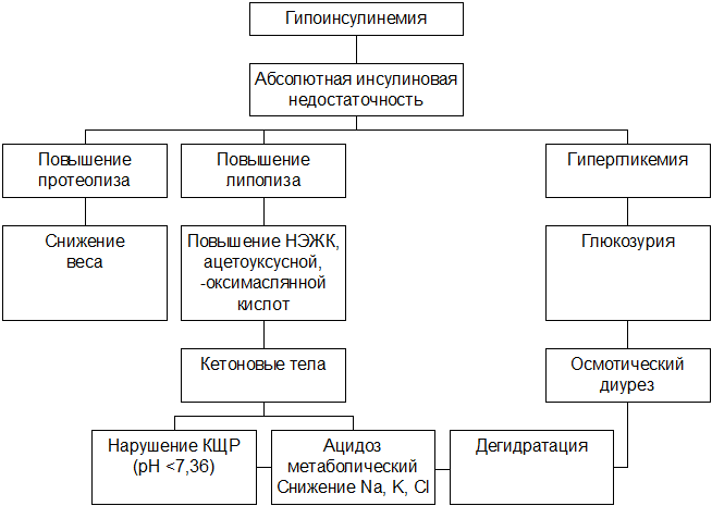 I. Абсолютной инсулиновой недостаточности с кетонемией (инсулинотерапия):