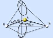 Водородное соединение серы – сероводород H2S. Сероводород – ковалентное соединение. Строение молекулы аналогично строению молекулы воды, атом серы находится в состоянии sp3-гибридизации, однако в отличие от воды молекулы сероводорода не образуют между собой водородных связей. Атом серы менее электроотрицательный, чем атом кислорода, имеет больший размер и, как следствие, меньшую плотность заряда. Валентный угол HSH составляет 91,1°, длина связи H – S равна 0,133 нм.