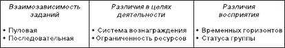 Причиной межгрупповых конфликтов могут выступать и различные временные горизонты, т. е. различное восприятие времени, необходимого для реализации целей каждой группой. Например, разработчики нового изделия в авиамоторном производстве мыслят категориями в 5-6 лет, которые им необходимы для создания нового изделия. Вместе с тем инженеры-производственники той же организации перспективу понимают в 1-2 года, не больше. При существовании таких различий вовременных горизонтах проблемы и вопросы, критичные для одной группы, не признаются существенными для другой, что создает базу для возникновения конфликтной ситуации. Данное положение усиливается при последовательной зависимости между группами.