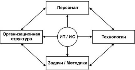 На рисунке 6.3 показано, как информационные технологии и системы вписываются в систему управления современным предприятием. Изменения в одном компоненте неизбежно вызывают изменения в остальных. Иногда на "увязку" таких изменений уходят месяцы и годы, что приводит к серьезным кризисным явлениям. В соответствии с иерархией управления компании информационные системы должны иметь соответствующие уровни разделения и использования информации.
