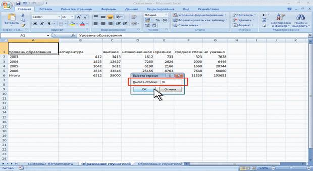 Высота строк в Microsoft Excel устанавливается в специальных единицах – пунктах. 1 пункт (пт.) равен примерно 0,35 мм.